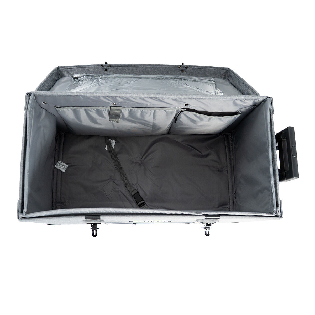 - Telescopic handle and removable 360° wheels for smooth, stable transport