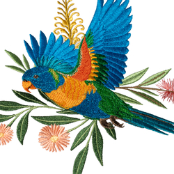 Add a burst of colour to your creations with this vibrant embroidery design featuring a stunning lorikeet in mid-flight. Bursting with rich blues, greens, and oranges, this design captures the beauty and energy of Australia’s iconic lorikeet. Surrounded by delicate native blooms and foliage, it’s perfect for adding a touch of nature-inspired colour to home décor, garments, and accessories. Ideal for nature lovers and embroidery enthusiasts alike, this design stitches up beautifully on a range of fabrics.