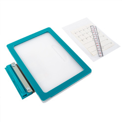 - Simply position the stabilizer and fabric over the bottom of the teal-hued magnetic frame.