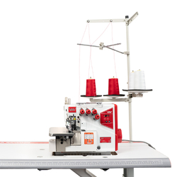 Equipped with a sturdy thread stand, this overlocker accommodates multiple spools, ensuring a consistent thread supply.
